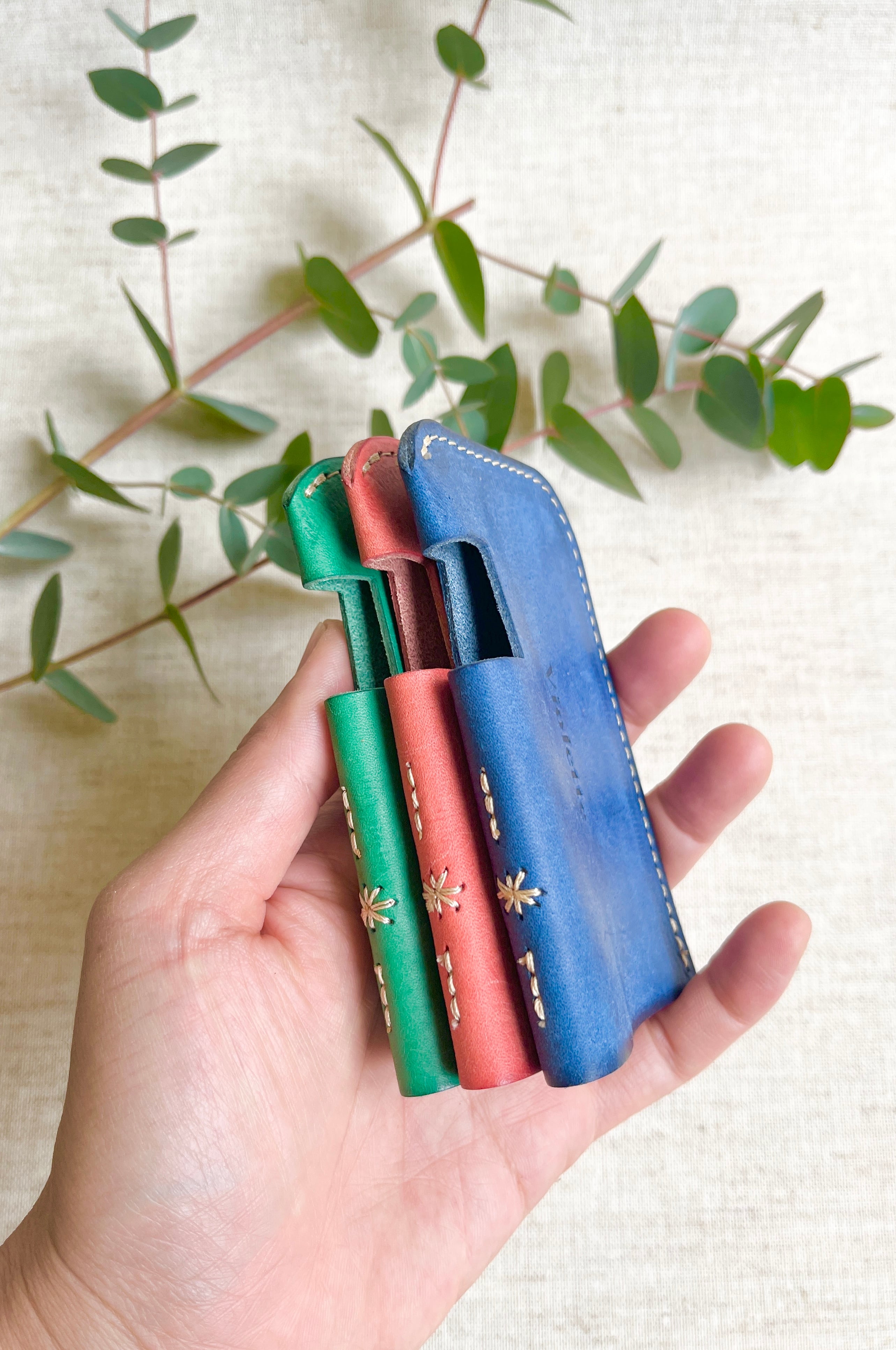今回は春らしい優しい色合いのマルゴーレザーで作りました。